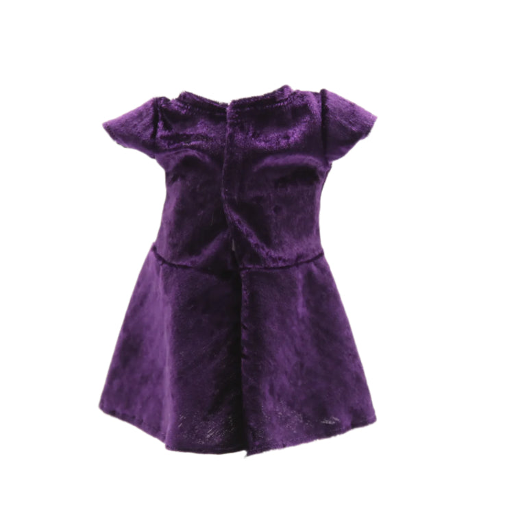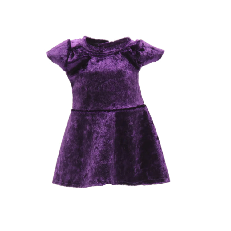 This elegant 18" doll dress features a rich dark purple panne knit fabric, offering a soft texture and subtle sheen. Designed with short sleeves, it combines classic style with comfort. Each dress is carefully hand-sewn by machine, ensuring quality craftsmanship despite material limitations. Perfect for adding a refined touch to your doll’s wardrobe.