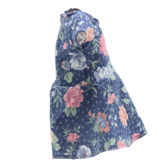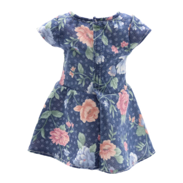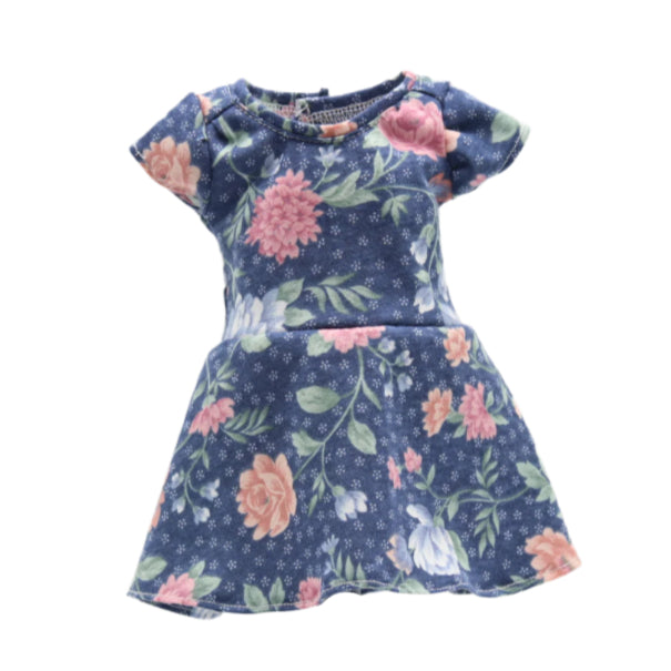 This playful 18" doll dress in federal blue is decorated with charming mauve and blue flowers on soft knit fabric. Hand-sewn by machine using limited materials, it brings a unique, cozy style to your doll’s wardrobe. Perfect for imaginative play and adding a splash of color to any doll collection!