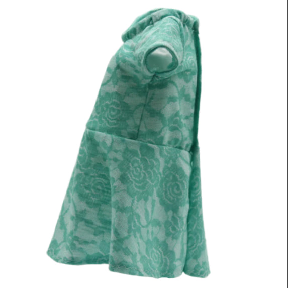 This playful 18" doll dress is crafted from soft green lace knit fabric and carefully hand-sewn by machine. With limited materials used, each dress is a unique treasure, perfect for adding a splash of charm and fun to your doll’s wardrobe. Let your doll twirl in style and comfort!